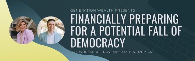 Join Danielle Nava, CFP®, and me on November 12 for our free webinar, “Financially Preparing for the Potential Fall of Democracy.” We’ll share practical steps to build financial resilience — from liquidity and diversification to avoiding common pitfalls — and discuss why most of the industry isn’t addressing these risks. It’s not about fear, but proactive planning in uncertain times.